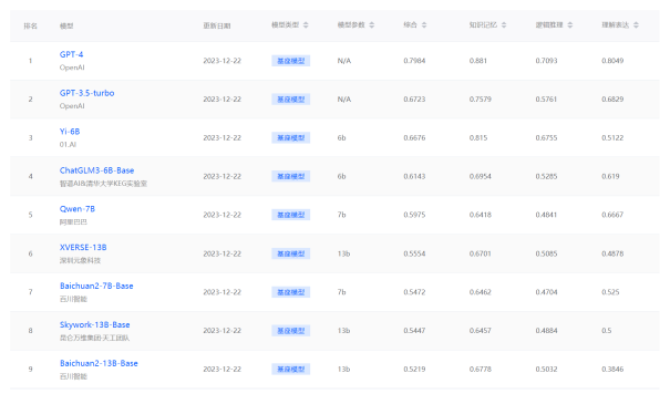 图 6. SecBench网络安全大模型评测榜单