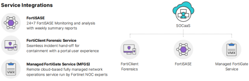 即日起,FortiGuard SOCaaS 用户可直接将 FortiGate 托管服务、FortiSASE 安全访问服务边缘、FortiClient 取证订阅服务与 SOCaaS 解决方案全面集成。集成后的统一解决方案可有效扩展 FortiGuard SOCaaS 功能,赋能安全团队有效简化威胁修复工作流程,例如通过 Fortinet Security Fabric 安全平台基于 Fortinet 分析师团队建议,快速调整防火墙设置。