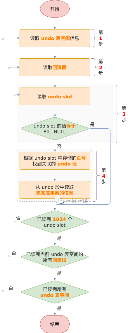 第 1 ~ 4 步是个循环的过程,直到读完所有 undo 表空间中的事务信息结束。