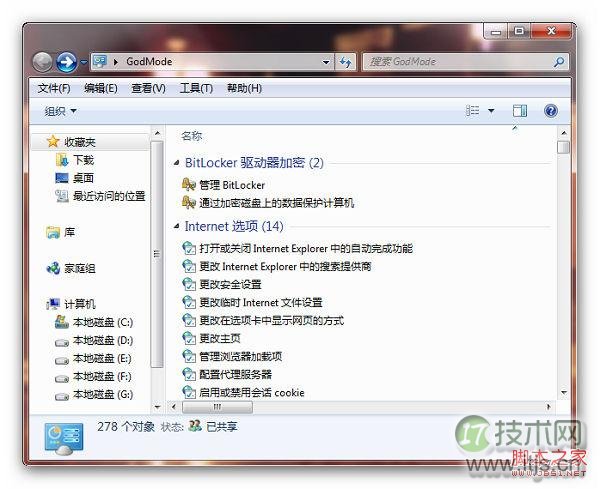 进入上帝模式,启动方法请参考:开启Windows 7的放自God Mode(上帝模式)