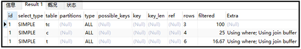 复制eg:explain select * from tb;1.(2)“执行计划”中需要知道的几个“关键字”