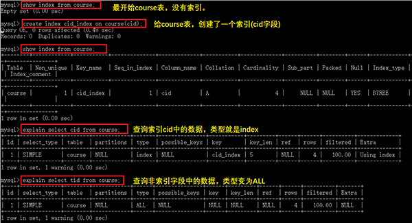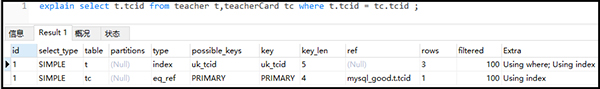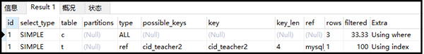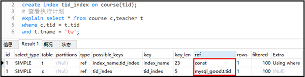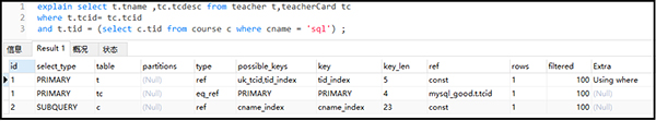 create index cid_teacher2 on teacher2(cid);# 查看执行计划