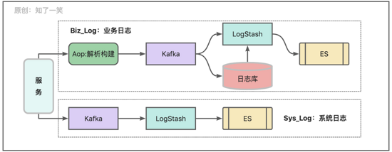 由于日志数据的体量很大,业务日志一般会存放在单独的库内,并且同步到搜索引擎中,对于系统运行日志则按照时段或者文件大小的策略直接写入搜索引擎;值得注意的是存放日志数据的ES也需要独立部署,避免与核心的业务数据放在一起,当流量突然增长时产生的日志数据会非常大;